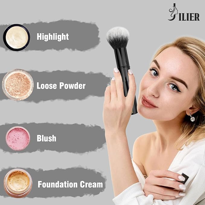 JILIER Retractable Kabuki Brush for Cream and Powder Face Makeup, Travel Makeup Brush Set, Perfect for Bronzer, Blush, and Other Face Makeup, make up brushes for women Cruelty-Free