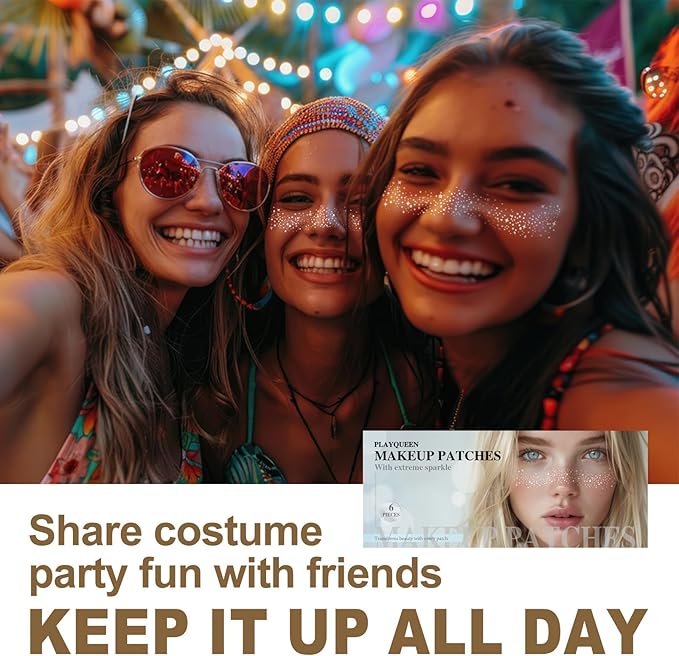 - 【Waterproof & Sweatproof】-Designed with long-lasting wear in mind, these face glitter tattoos stay put through parties, photoshoots, and summer beach events, ensuring your look stays flawless all day long.