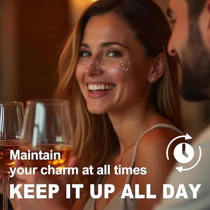 - 【Sparkling Glam】-Our Silver Glitter Freckles Face Tattoos add a stunning, eye-catching sparkle to your makeup, making you the center of attention wherever you go.
