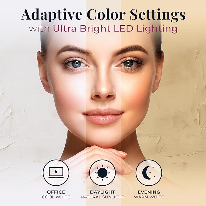 - LIGHTING MODES - With the Zadro Hollywood mirror, you can effortlessly customize your lighting experience to suit any occasion or preference, offering three distinct color settings—cool white, natural sunlight, and warm white—that allow you to adjust the ambiance to perfection, whether you're prepping for a professional appearance, enjoying a natural daylight glow, or creating a cozy, warm atmosphere for a more intimate, relaxed beauty routine.
