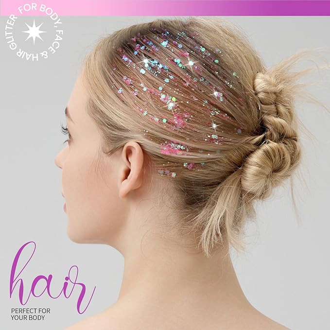 - All-Purpose Sparkling Glitter for Face, Body, and Hair Use: Transform any occasion into a glamorous affair with our pink glitter gel. Suitable for use on the face, body, and even hair, it adds a touch of whimsical bling to any look. Perfect for kids and adults alike, it's a must-have accessory for festivals, concerts, parties, and any celebration that calls for a little extra magic