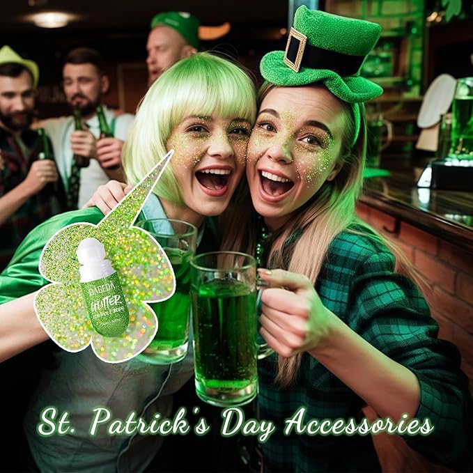 DAGEDA Green Body Glitter Gel, Roll-on Face Glitter for St Patricks Day Festival Rave Accessories, Holographic Hair Glitter Gel,Body Shimmer Mardi Gras Makeup for Rave Party