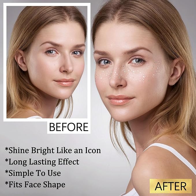 - Fun Sparkling and Beautiful: If you're looking to elevate your beauty routine with a touch of sparkle, Yazhiji Gold Glitter Freckles Kit could be your new favorite accessory, adding a touch of sparkle to your face. It includes 24pcs glitter freckles face tattoos that you can use it for many times. Each patch is adorned with shimmering speckles to highlight your beauty.