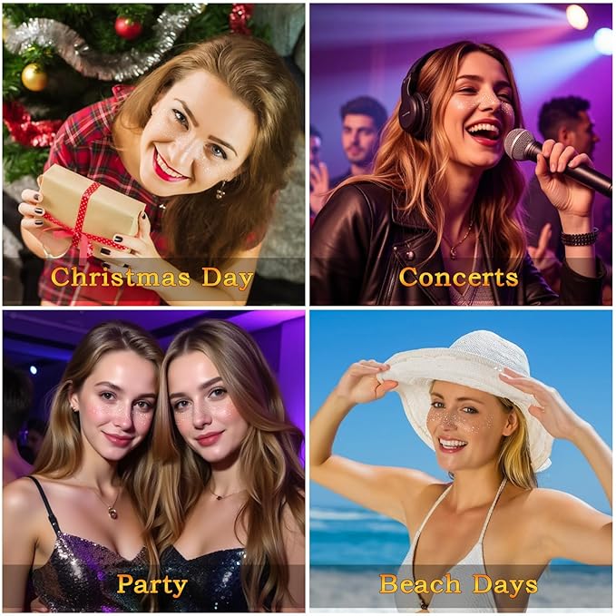 - Versatile Use: Get these face glitter freckles, designed to help you achieve a stunning look for any occasion such as on a girls trip, weeding, bride after party look, concert, Birthday party, Elsa costumes or any costume events, cosplay, homecoming dance, bachelorette party, Halloween party, music festival, summer party, cotton ball, Girls night, sleepovers, beach weekend, bachelorette/bridal parties