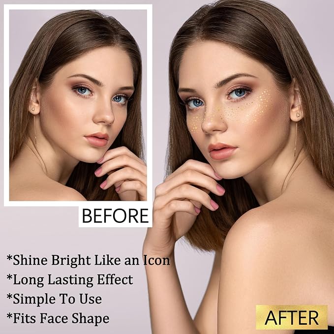 - Fun Sparkling and Beautiful: If you're looking to elevate your beauty routine with a touch of sparkle, Yazhiji Gold Glitter Freckles Kit could be your new favorite accessory, adding a touch of sparkle to your face. It includes 24pcs glitter freckles face tattoos that you can use it for many times. Each patch is adorned with shimmering speckles to highlight your beauty.