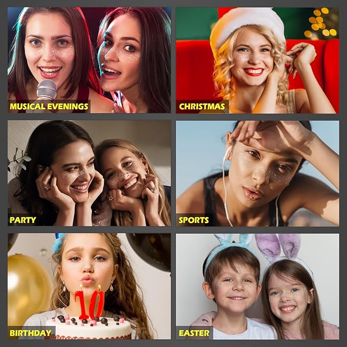 - 【WIDELY USED】Our glitter patches can create a stunning, glittery look on your face for any occasions or festivals. Perfect for wearing in Halloween, Christmas, birthday parties, concerts, dances and shows! You can wear it while swimming, running, sweating, lake life, showering, tanning, etc