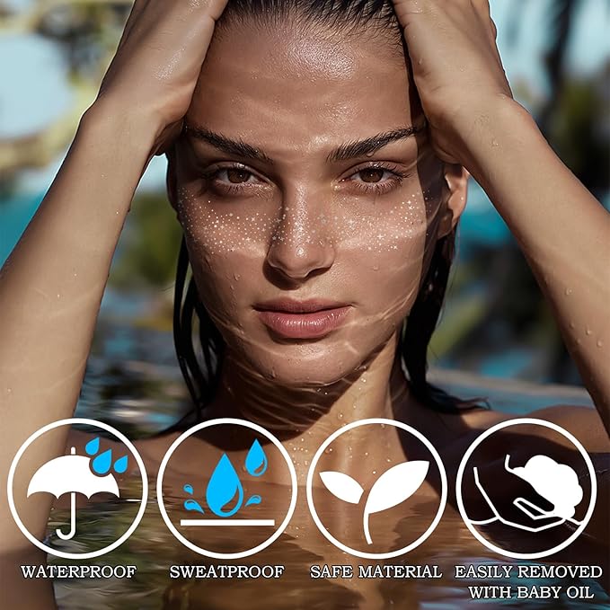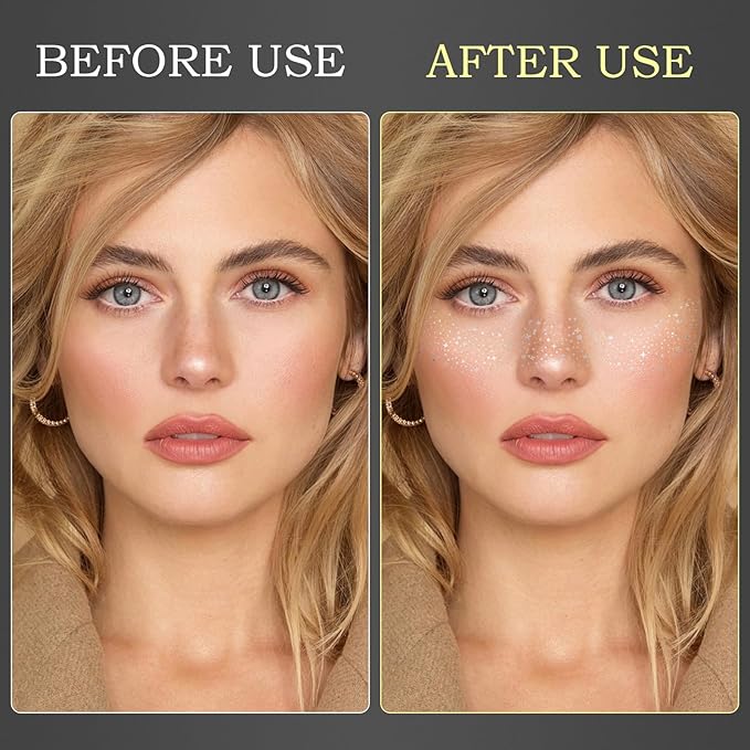 - 【EASY TO APPLY & REMOVE】APPLY: Remove clear film, Put the glitter patches on dry skin and wet it with water, and you can get a a natural glitter in 20 seconds. Removal: easy with regular baby oil or cleansing oil. rubbing alcohol also works great to get the freckles off, and without leaving any residue