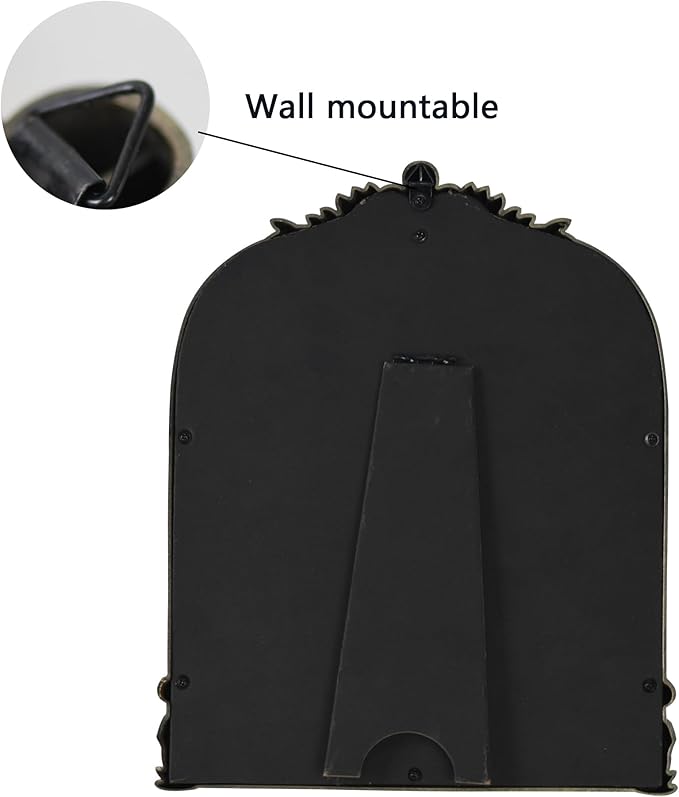 Gold Plastic Arched Makeup Mirror, Standing, Hanging or Wall Mount, Bathroom, Living Room, Bedroom Gold Decorative Mirror (10.6 * 8.6 inch)