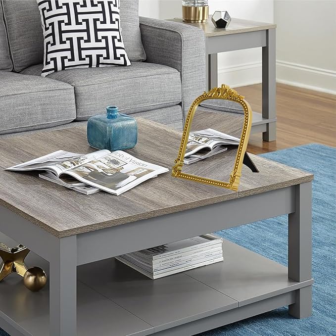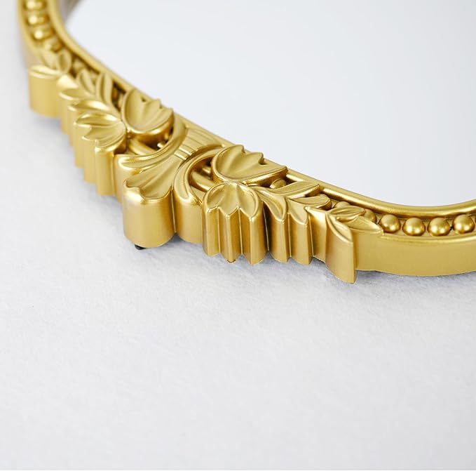 - VINTAGE ORNAMENTAL DESIGN - This exquisite freestanding vanity mirror features a high-quality plastic frame adorned with a beautiful antique gold finish that can be used as elegant home décor.