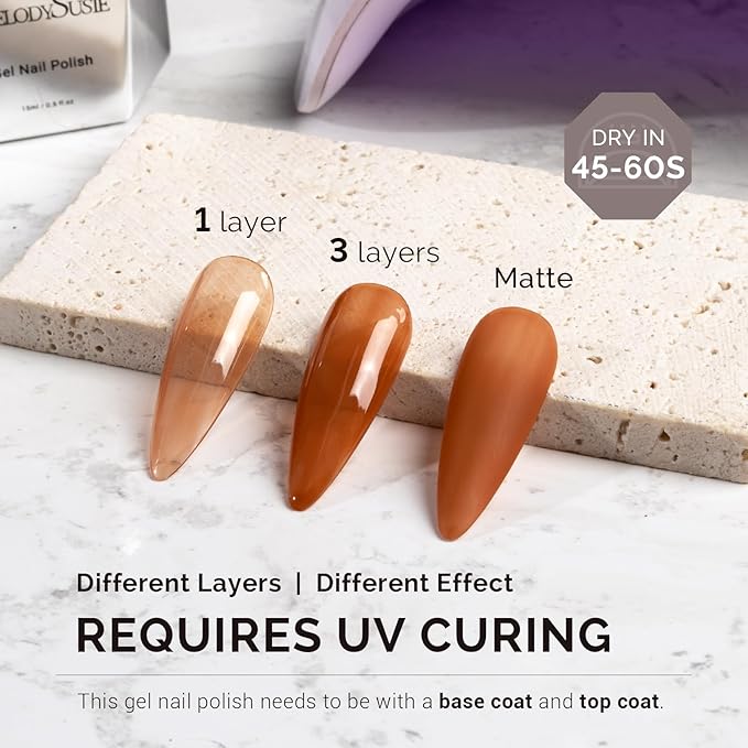 MelodySusie Transparent Brown Gel Nail Polish,0.5fl oz Nails Soak Off UV LED Cinnamon Brown Gel Polish Gift for Women Nail Art Manicure Salon DIY Nail Design Decoration at Home-1654