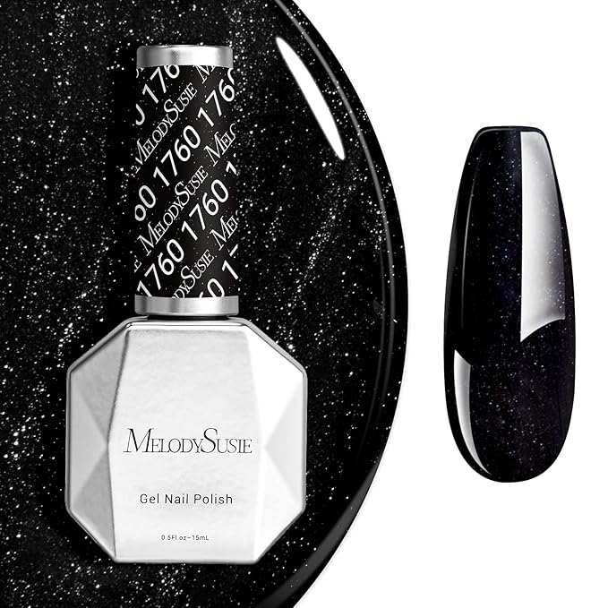 MelodySusie Black Gel Nail Polish, 0.5fl oz Nails Soak Off UV LED Black Shimmer Gel Polish Gift for Women Nail Art Manicure Salon DIY Nail Design Decoration at Home-1760