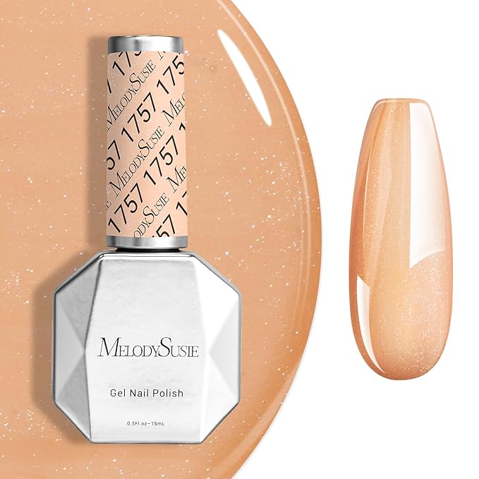 MelodySusie Orange Shimmer Gel Nail Polish,0.5fl oz Nude Shimmer Soak Off UV LED Orange Sparkle Glitter Gel Polish Gift for Women Nail Art Manicure Salon DIY Nail Design Decoration at Home-1757
