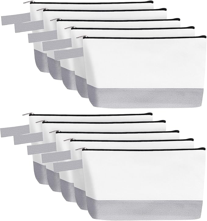10 Pieces Cotton Canvas Makeup Bag with Bottom and Strap, Multi-Purpose Cosmetic Bag with Zipper Travel Toiletry Pouch, Blank DIY Craft Bag (White&Grey, S)