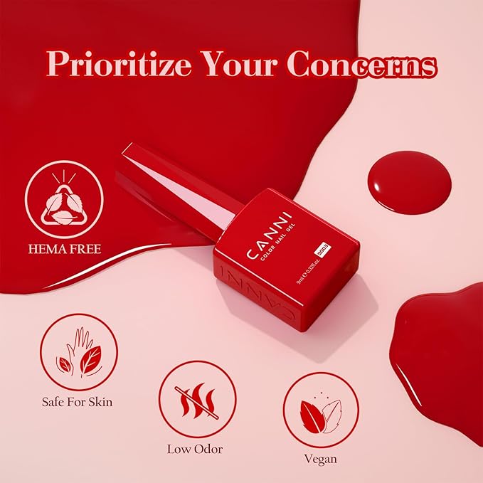 CANNI Gel Nail Polish Set – 6 Classic Colors (Black, White, Red, Pink, Mauve, Berry), 9ML Soak Off UV LED HEMA-Free Gel for Long-Lasting DIY or Salon Nail Art