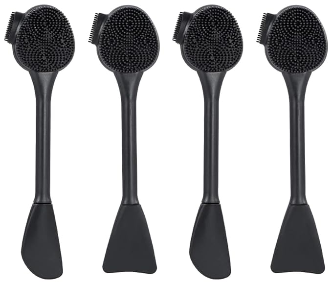 4 Pack Silicone Facial Cleansing Brush 4 in 1, Silicone Face Exfoliating Wash Scrub Brush Dual Face Double-Ended for Face Skincare and Massage (Black)
