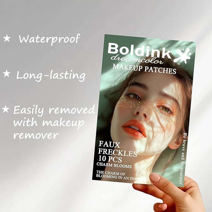 - EASY TO APPLY - Using our Boldink Face Glitter speckle patches is easy and quick! Simply peel off the backing, apply the sticky side to your skin, and press with a damp washcloth for 60 seconds. Once you remove the patch, you'll be amazed by your new sparkly look! No fuss, no mess, and a natural-looking glittery look in just minutes. Perfect for those times when you want to add a touch of sparkle to your look!