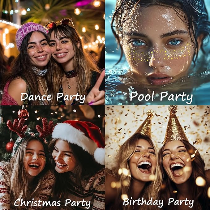 - VERSATILE CREATIVE - Unleash your creativity with our glitter speckle patches! These glitter patches are a clever way to enhance your look, perfect for special occasions, concerts, beach days, or music festivals. More than just a traditional face paint makeup, they can enhance the natural beauty of your everyday makeup. With our versatile face glitter spots, you have the flexibility to create a unique style and express yourself however you want.