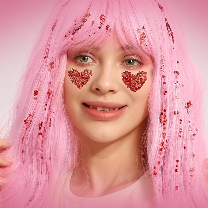 - Shiny Body Glitter Gel: Elevate your shine with our holographic body glitter available in 6 stunning colors. This gel includes sequins in diverse shapes like love heart, hexagonal and fine glitter. It’s perfect for application on your face, body, and hair