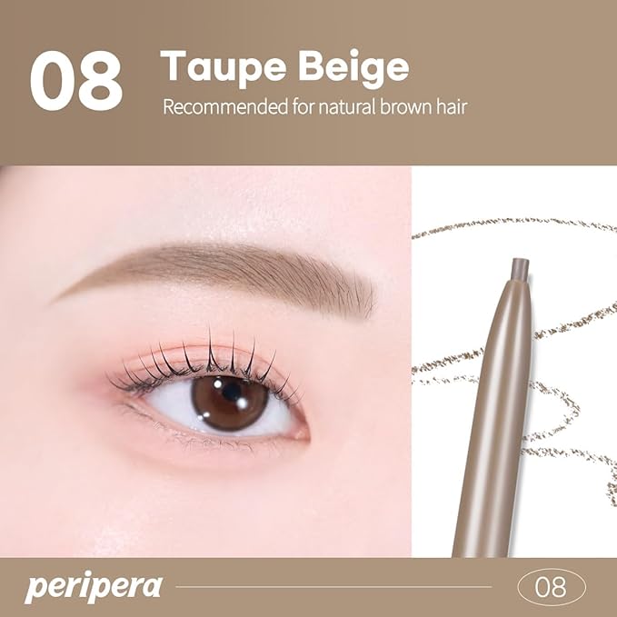 PERIPERA Speedy Skinny Brow (08 Taupe Beige), 1.5mm Precise Eyebrow Pencil, Dual-Sided Fine Tip Shades, Define Fills Brow Make up, K Beauty, Korean Make-up