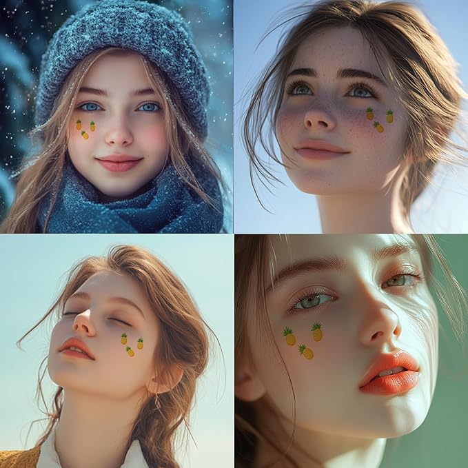 - VERSATILE CREATIVE - Unleash your creativity with our fruit speckle patches! These fruit patches are a clever way to enhance your look, perfect for special occasions, concerts, beach days, or music festivals. More than just a traditional face paint makeup, they can enhance the natural beauty of your everyday makeup. With our versatile face fruit spots, you have the flexibility to create a unique style and express yourself however you want.