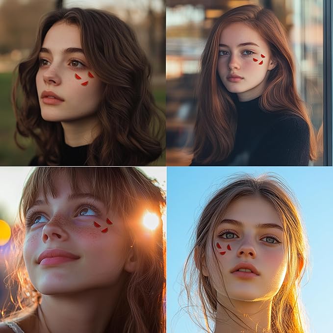 - VERSATILE CREATIVE - Unleash your creativity with our fruit speckle patches! These fruit patches are a clever way to enhance your look, perfect for special occasions, concerts, beach days, or music festivals. More than just a traditional face paint makeup, they can enhance the natural beauty of your everyday makeup. With our versatile face fruit spots, you have the flexibility to create a unique style and express yourself however you want.