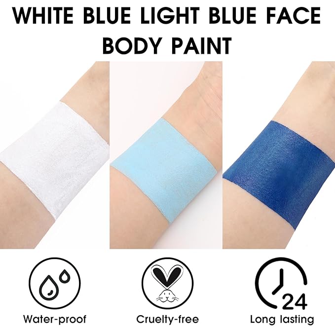 BAD COLOR 3PCS Blue White Light Blue Face Body Paint Stick Makeup for Sally/Corpse Bride SFX Cosplay & Dress Up, Full-Coverage Halloween Facepaint Makeup Kit