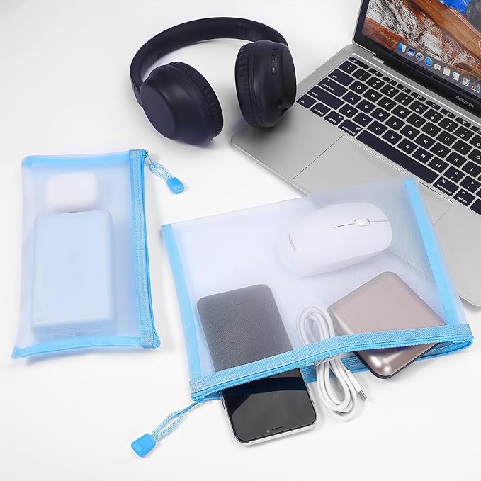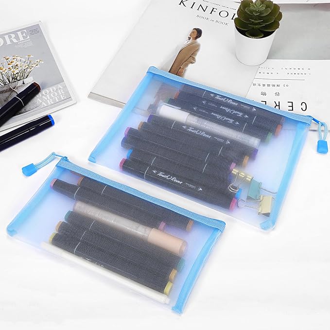 12 Pieces Zipper Nylon Mesh Pouch, Mesh Cosmetic Bags Makeup Bags Pencil Case, Multipurpose Travel Bags for Cosmetic School Office Supplies and Travel Accessories (Sky Blue, A5+B6)