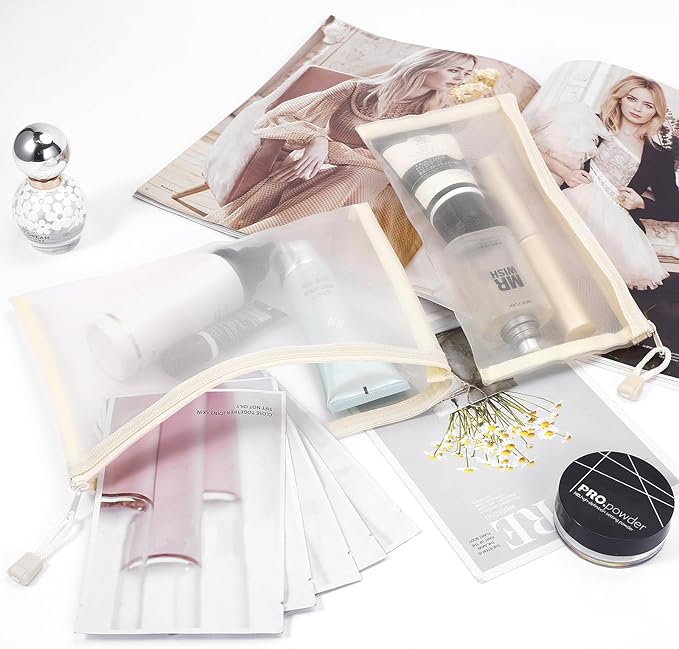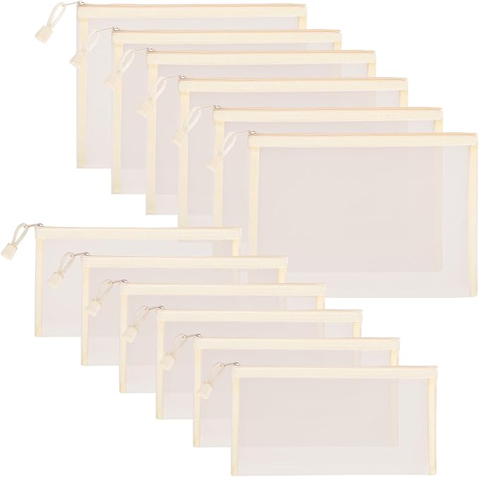 12 Pieces Zipper Nylon Mesh Pouch, Mesh Cosmetic Bags Makeup Bags Pencil Case, Multipurpose Travel Bags for Cosmetic School Office Supplies and Travel Accessories (Beige, A5+B6)