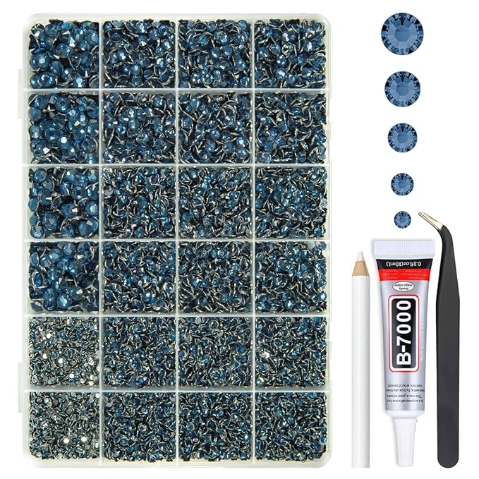 About This ❤【24 Grids Big Box Ink Blue Resin Crystal Rhinestones w B7000 Glue for Bedazzling Crafting】Flatback Dark Blue Stones... Read more