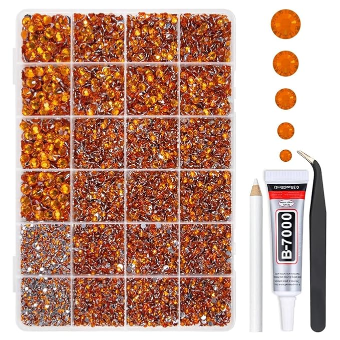 qiipii Orange Red Crystal Resin Rhinestones w B7000 Glue for Bedazzling Crafting 2mm-6mm Flatback Stones Diamonds Crystals Gems Bedazzler Kit for Nails Face Eyes Makeup Tumblers Bottles DIY Crafts