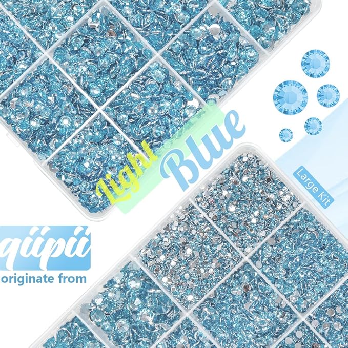 qiipii Light Blue Resin Rhinestones w B7000 Glue for Bedazzling Crafting 2mm-6mm Sky Blue Flatback Stones Diamonds Crystals Gems Bedazzler Kit for Nails Face Eyes Makeup Tumbler Bottles Crafts Shoes