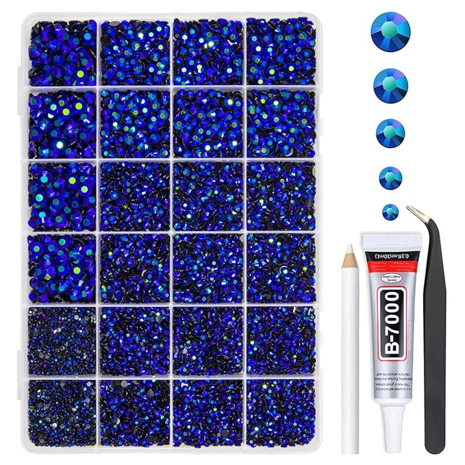 qiipii Sapphire Blue AB Resin Rhinestones w B7000 Glue for Bedazzling Crafting 2mm-6mm Flatback Jelly Stones Diamonds Gems Bedazzler Kit for Nails Face Eyes Makeup Tumblers Bottles DIY Crafts Shoes