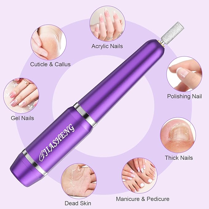 JIASHENG USB Electric Nail Drill, Portable Electric Nail File for Acrylic Gel Nails,Nail Drill Kit Manicure and Pedicure Kit with Nail Bits for Home and Salon Use,Dark Purple