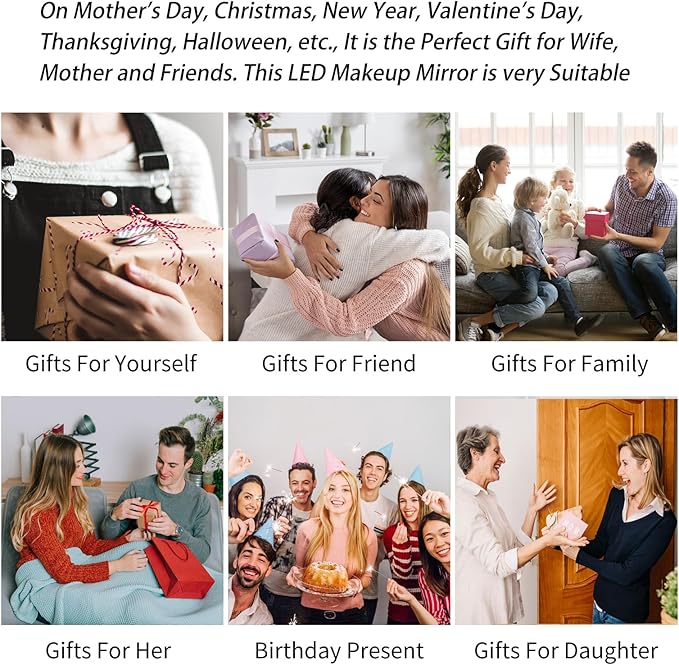 - The Perfect Gift: Makeup mirror with lights is the perfect gift for women and you can give a girl, family, wife or girlfriend for Christmas, Valentine's Day, Mother's Day or birthday.Show her you love her by illuminating her beauty with this light-up mirror