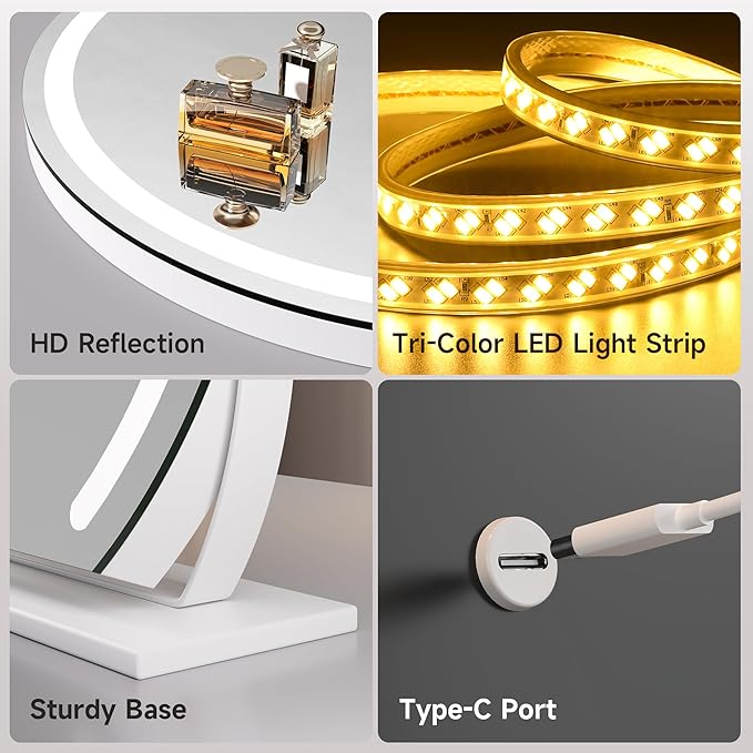 - Stable and Durable Base: The high-quality, thickened iron frame and smooth base ensure the mirror stays securely in place on any countertop or desk. The sturdy design prevents wobbling, and the smooth surface protects your furniture from scratches, offering both style and functionality.