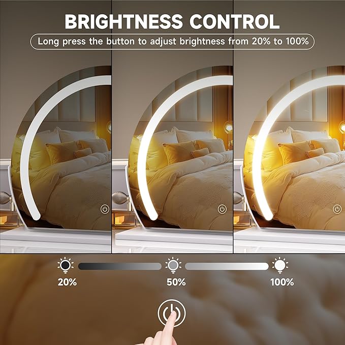 - Adjustable, Stepless Dimming: Enjoy full control over your lighting with the stepless dimming feature. Easily adjust the brightness to your preferred level for every occasion, from bright and energizing light for makeup application to softer lighting for relaxation or evening tasks.