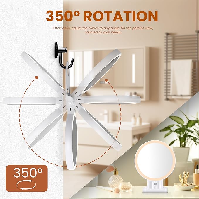 - 360°handheld Base design: :The mirror features a sturdy base that ensures stability during use, preventing wobbling or tilting. It provides solid support for precise, hands-free makeup application. Note: This model is designed with a fixed height for maximum stability and durability. If adjustable height is important for your setup, we also offer other models within our store to meet different preferences.