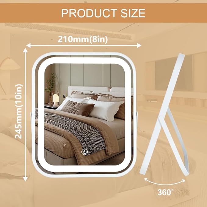 - 【Adjustable Brightness】The lighted makeup mirror features a dimmable LED light system, allowing users to customize the brightness for various lighting conditions. With multiple levels of light adjustment, you can achieve perfect lighting for makeup application, skincare routines, or hairstyling.