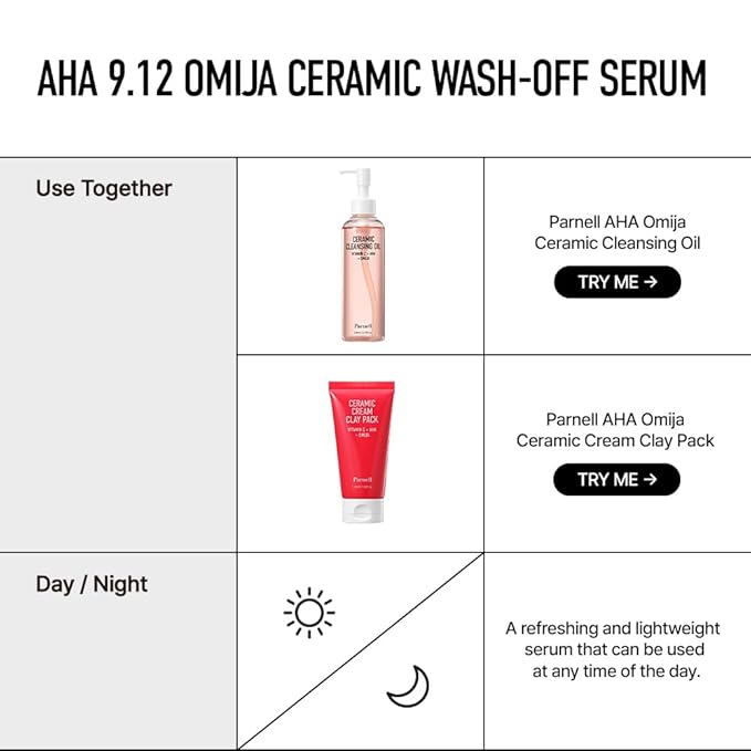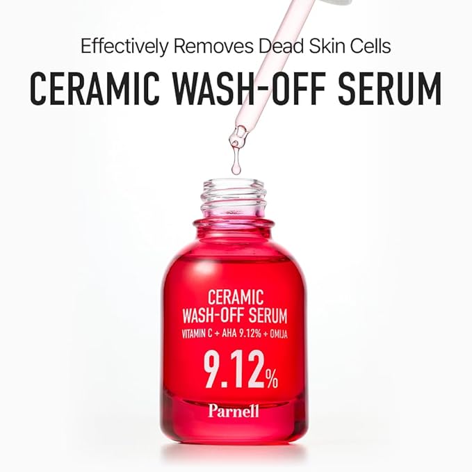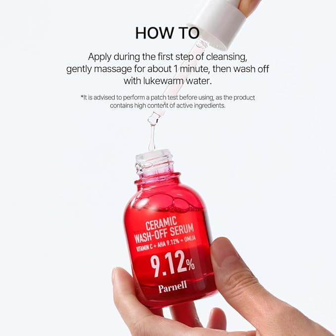 Parnell AHA 9.12% Omija Ceramic Wash-Off Serum | 1-Minute Face Exfoliation for Sebum Control & Smooth Texture | PHA BHA LHA Vitamin C K-Care (1.01 fl oz)