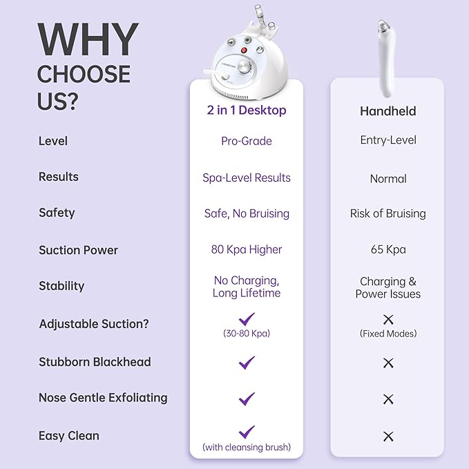 - Friendly for Beginners & Experienced Users: This 2-In-1 at-home facial machine is easy to set up and use. Detailed tutorial videos ensure a quick learning curve, making your skin routine efficient. It takes up just a small amount of space in your bathroom vanity and is great to have when you want to skip the esthetician.