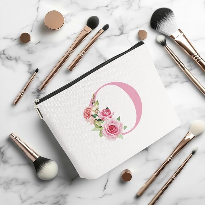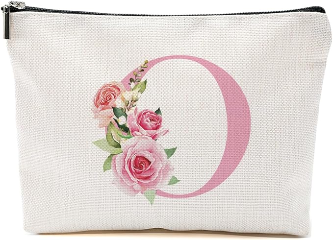 Pink Monogram Makeup Bag, Initial O, Cosmetic Bag Personalized Travel Organizer Bags Makeup Pouch, Monogrammed Gifts for Women Girls Friend Sisters Daughter Bridesmaid Wedding Bridal Shower Gifts