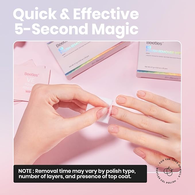 - Travel-friendly independent packaging: Each nail removal wipe is sealed in a one-time package! Can be placed in handbags, makeup bags or suitcases, does not leak, does not dirty. Can maintain freshness, cleanliness and ready for use at any time. Whether at home, on a trip or for makeup touch-ups, these small wipes are ideal choices. Say goodbye to large bottles, these compact wipes make nail removal extremely easy.