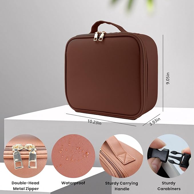 - 【Advanced Leather】This travel makeup case with LED mirrors is made of high-quality PU material,The size of the makeup bag is 10 * 8.85 * 4.1in,which is durable, waterproof, and easy to clean,which feels soft and delicate, full of texture. Every inch of leather has been carefully selected and treated to show natural texture and luster