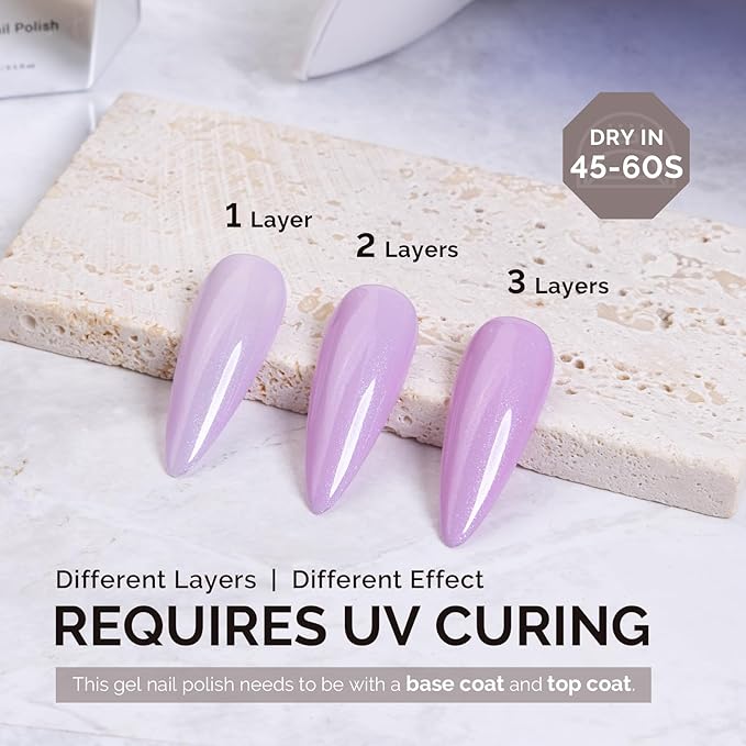 MelodySusie Pastel Purple Shimmer Gel Nail Polish,0.5fl oz Nails Soak Off UV LED Light Purple Glitter Gel Polish Gift for Women Nail Art Manicure Salon DIY Nail Design Decoration at Home-1645