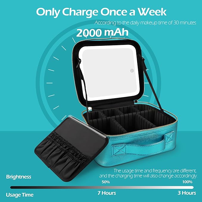 MOMIRA Travel Makeup Bag Cosmetic Bag Makeup Organizer Bag with Lighted Mirror, Adjustable Brightness in 3 Color Scenarios, Waterproof Makeup Train Case, Gift for Women - Brilliant Blue