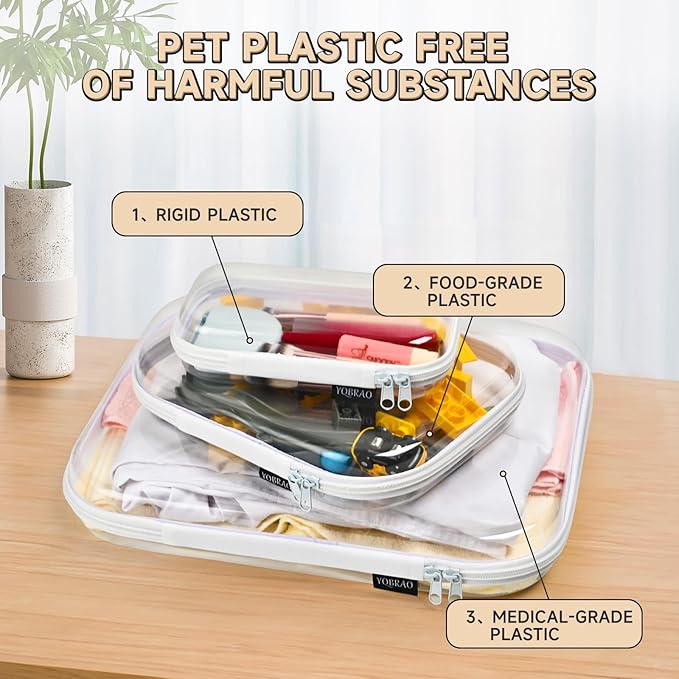 - High-Quality Materials: These clear hard zipper cases are made of from professional-grade plastic and free from BPA and phthalate, we ensure that the YQBRAO Clear Hard Shell Zipper case are made for durability and the safety of your family.
