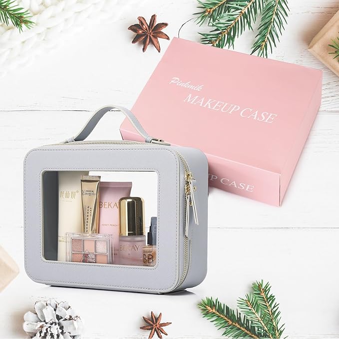 Pinkmik Clear Makeup Bag Waterproof Travel Case for Cosmetics and Toiletries Women's Makeup Organizer and Car Bag with Zipper (Gray, L)