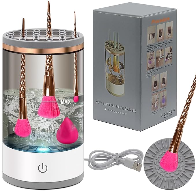 - Multi-functional Deep Cleaning: The high speed fast rotating water stream deeply cleans every detail of the bristles of the brush, easily removing all kinds of cosmetics,oil and powder. Not only can you clean your makeup brushes sets, but you can also put your beauty egg, puff and sponge in there to wash them and remove dirt just as easily. After cleaning makeup brushes it can also be used as a organizer tool for daily storage of makeup brushes, very practical