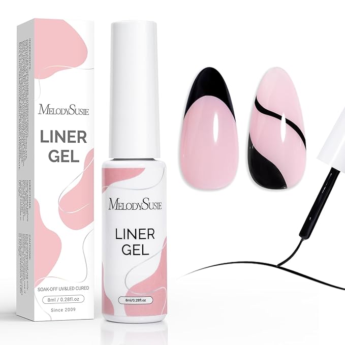 MelodySusie 8ML Black Gel Liner Nail Art Polish,for Line and Patterns of Painting,French Nail Tips,DIY Manicure Pedicure for Home DIY Salon Use