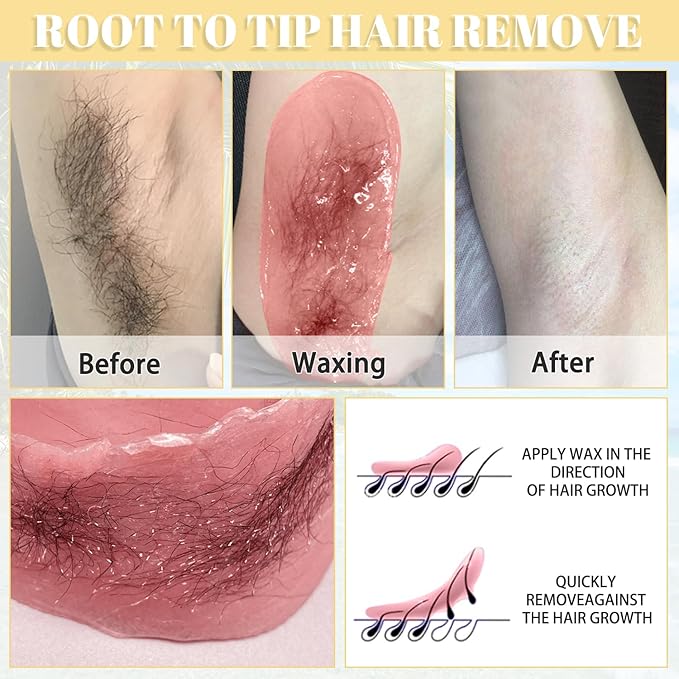 - Quick At-Home Waxing Kit:Includes hard wax beads + 20 applicators (10 large, 10 small). Fast-drying wax peels off clean with zero residue and 40% less pain than soft wax—salon results in minutes